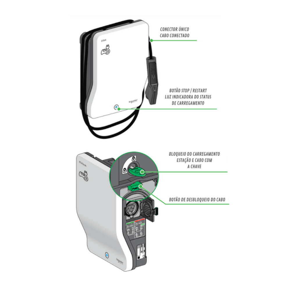 O carregador de bateria EVB1A7PCRI EVLink da Schneider é a solução perfeita para quem quer carregar seu veículo elétrico de maneira confiável e rápida. O produto apresenta uma corrente de saída de 32A e uma tensão de entrada entre 220 e 240 volts, proporcionando uma potência de carregamento de até 7,4 kW. Graças ao cabo T2 integrado, o carregador EVB1A7PCRI é fácil de instalar e usar, permitindo que o usuário conecte seu veículo elétrico de maneira prática e segura. O carregador é compatível com a maioria dos veículos elétricos e excede as expectativas em termos de qualidade e confiabilidade. Com seu tamanho compacto e design moderno, o carregador de bateria EVLink é uma opção elegante para quem busca uma solução durável e de alta qualidade para carregar seu veículo elétrico de forma eficiente e econômica. Garanta já o seu carregador de bateria Schneider EVB1A7PCRI EVLink e tenha toda a praticidade de carregar seu veículo elétrico com segurança, rapidez e comodidade. Invista em um produto de qualidade e aproveite todas as vantagens da mobilidade elétrica.